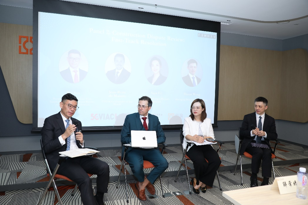 第二议题环节聚焦"建设工程争议审查:速裁与高效解纷",与会嘉宾结合贸仲《建设工程争议评审规则》及最新实践,深入探讨了争议评审机制的核心程序规则、与仲裁程序的衔接路径及差异化优势,并结合自身实务经验,阐释如何通过"评审-仲裁"双轨机制优化争议解决效率,为当事人提供分层式纠纷解决方案。