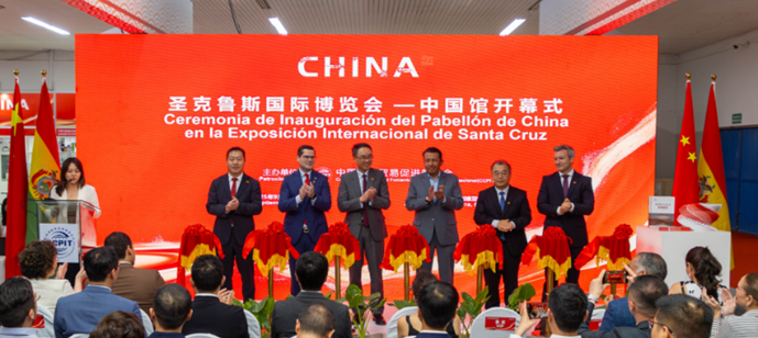 2025年9月20日,圣克鲁斯国际博览会中国馆开幕式在玻利维亚圣克鲁斯国际展览中心隆重举行。作为庆祝中玻建交40周年的重要配套活动,中国馆由中国贸促会精心筹备设立,得到了中玻两国政府和工商界的鼎力支持。中国驻玻利维亚大使王亮,玻利维亚外交部外贸一体化副部长阿哈塔,中国贸促会代表周凯,玻利维亚工商、服务和旅游商会主席安特罗,玻利维亚中国企业商会会长高政亮,圣克鲁斯国际展览中心首席执行官施特劳斯等出席中国馆开幕式。同期,中国贸促会还举办了中国-玻利维亚经贸对接会并发布中国企业采购信息。
