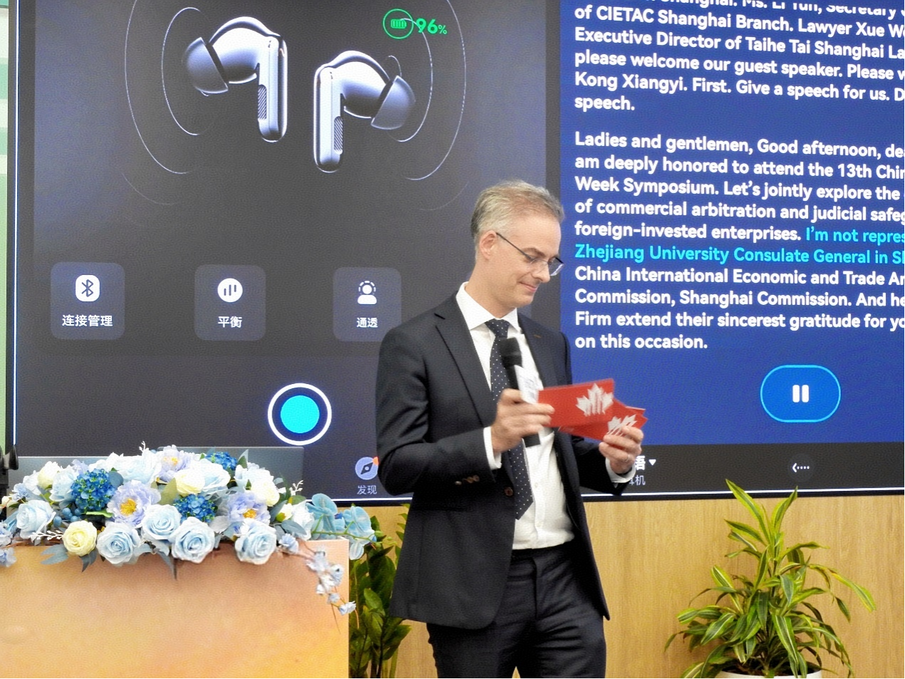 活动伊始,加拿大驻上海总领事馆副总领事孔毅翔(Alexandre Cérat)、贸仲上海分会秘书长李云、泰和泰(上海)律师事务执行主任薛文成分别为本次活动致开幕辞。