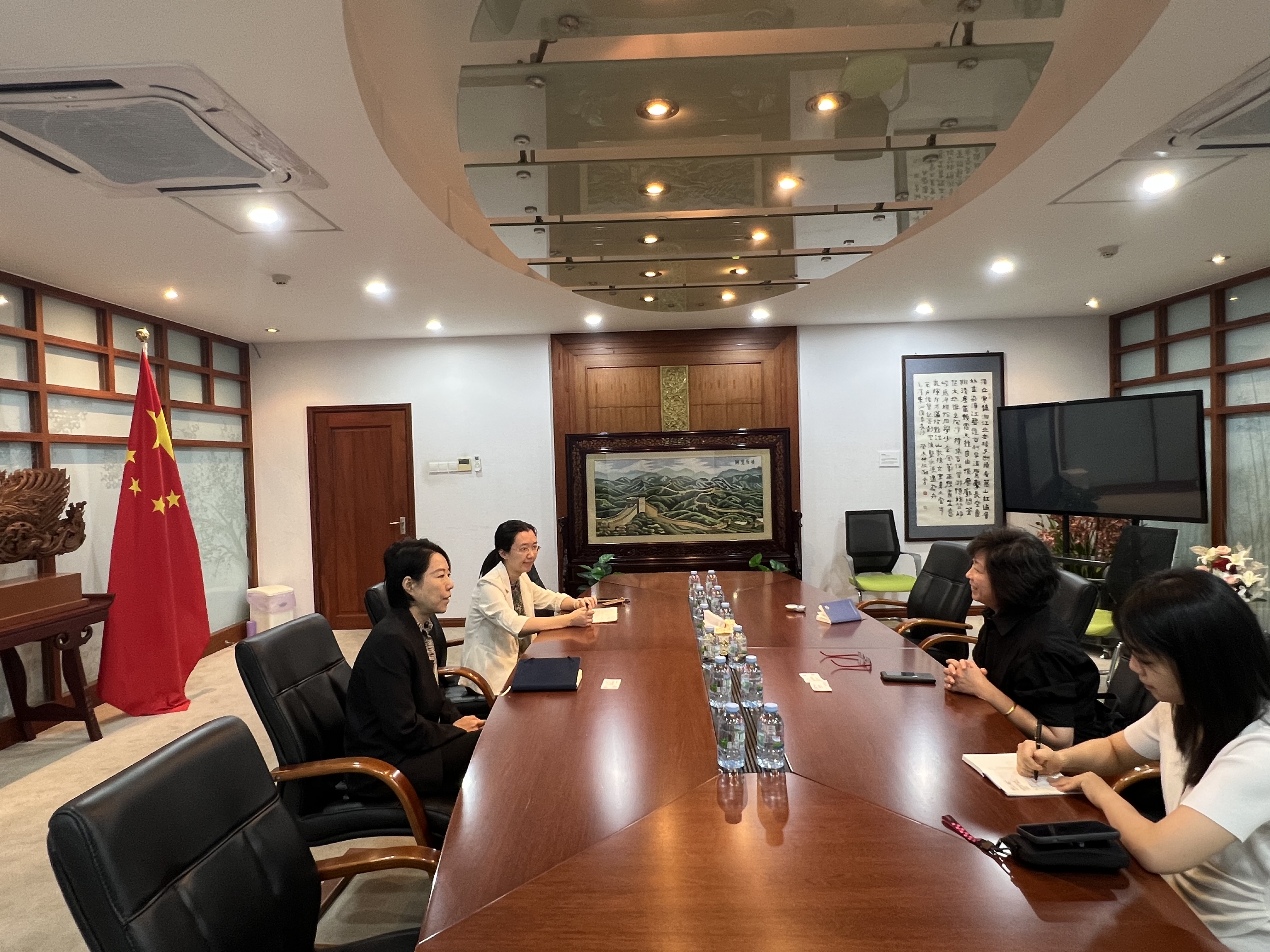 10月22日上午,贸仲代表团拜会我国驻泰国大使馆。我国驻泰国大使馆经济商务处张潇潇参赞接待了贸仲代表团,并进行了座谈交流。