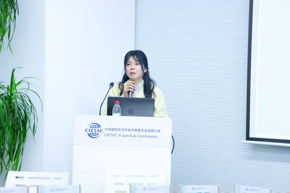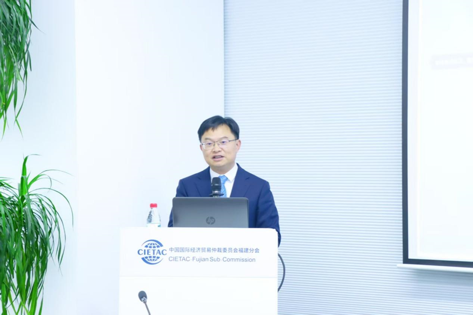 (贸仲福建分会秘书长、海峡两岸仲裁中心副秘书长陈朝晖致辞)