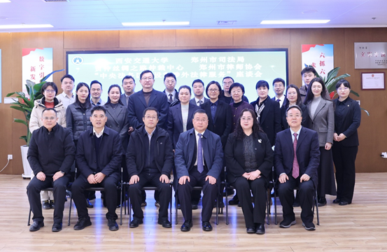 1月26日,中国国际经济贸易仲裁委员会丝绸之路仲裁中心(简称“贸仲丝路中心”)副秘书长蒋红梅,西安交通大学法学院副院长李万强、办公室主任郭庆一行赴郑州中央法务区开展专题调研,并见证西安交通大学与郑州市司法局、郑州市律师协会合作签约仪式。各方围绕“中央法务区建设和涉外法律服务”深入座谈交流、凝聚合作共识。郑州市司法局党委委员、一级调研员冯树松主持会议。