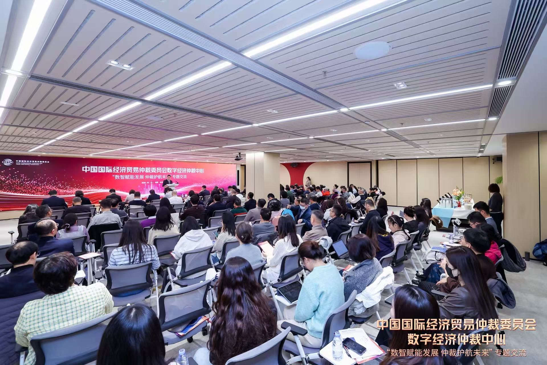 为贯彻落实国家数字经济发展战略、服务数字中国建设,2026年3月18日,中国国际经济贸易仲裁委员会(“贸仲”)正式设立数字经济仲裁中心、发布《数字经济法治保障及争议解决研究》研究成果并成功举办“数智赋能发展 仲裁护航未来”专题交流活动。中国贸促会副会长聂文慧出席活动并致辞,贸仲副主任兼秘书长、仲裁院院长王承杰主持活动。